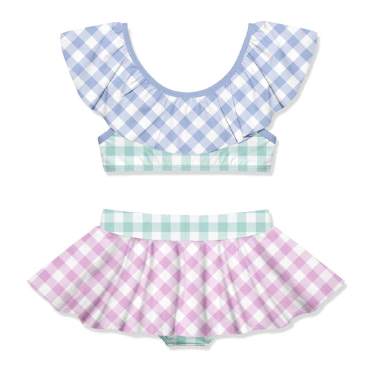 Periwinkle Gingham Ruffle Skirted Bikini
