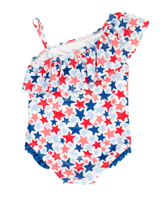 SaleVendor:RuffleButtsStar Spangled Shoulder Ruffle One Piece Suit