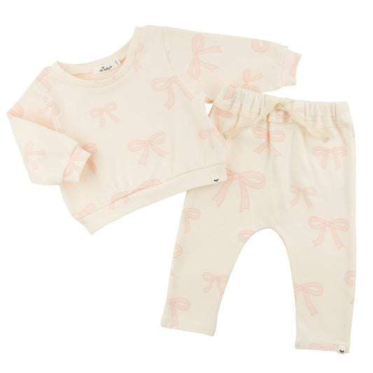 Big Bows Brooklyn Boxy Jogger Set in Milk/Pink