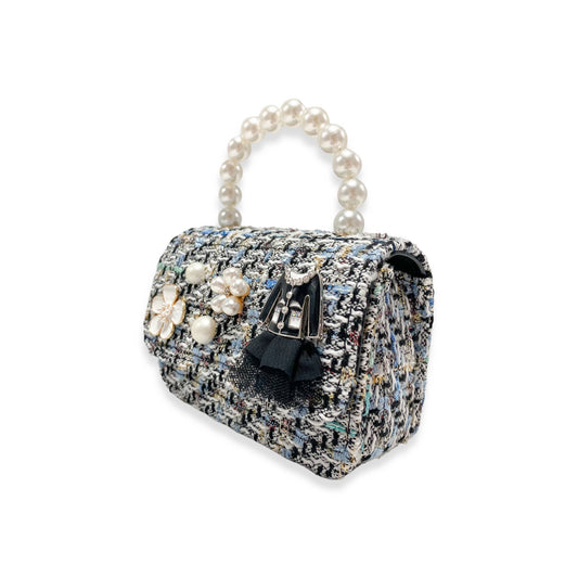Floral Charms Tweed Purse with Pearl Top Handle