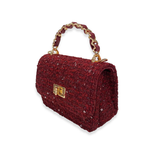 Burgundy Tweed & Sequins Purse