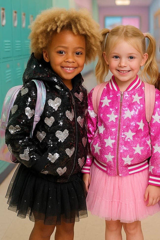 Hot Pink Star Sequin Bomber Jacket