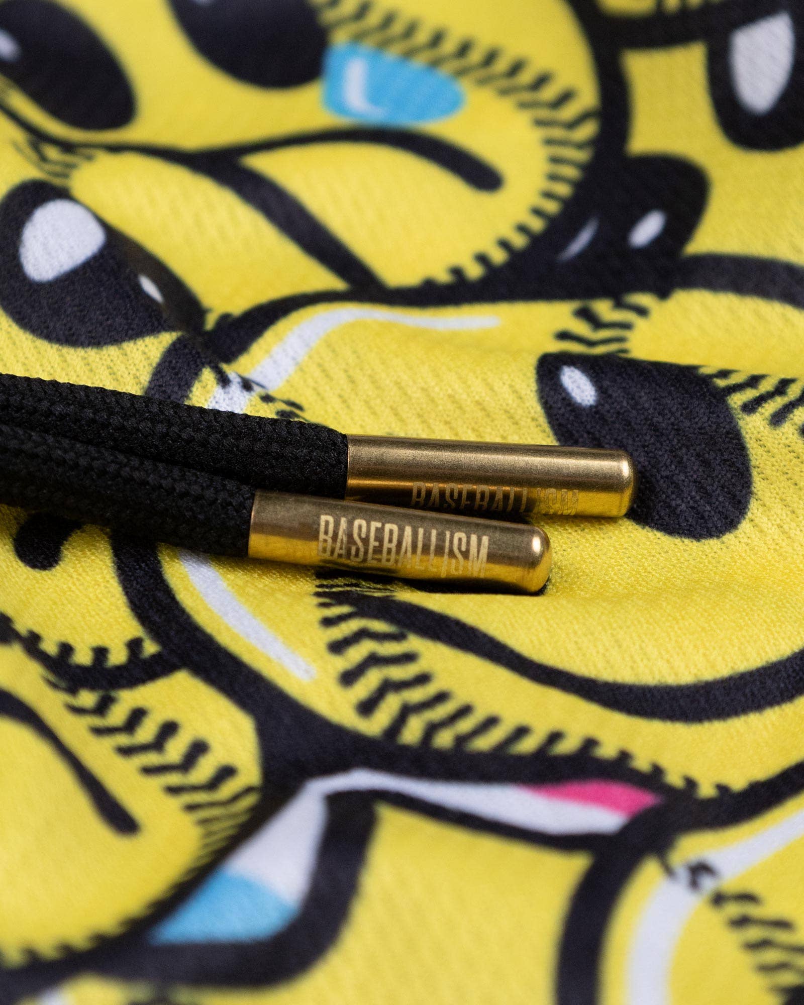 The perfect shorts to keep you cool while your baseball emotions are running hot! Features: Diamond Air Fine Mesh Fabric: Four-way stretch breathable and moisture-wicking, engineered for comfort whether you're on the move or relaxing. Athleisure-Inspired Design: A perfect fusion of athletic functionality and casual style, ideal for everyday wear. Extended Drawstrings: Extra-long drawstrings add a bold, streetwear touch while providing a secure, adjustable fit. Signature Gold Aglets: Baseballism-branded gold aglets for a premium finish that complements the modern athleisure aesthetic. Flag Man Jock Tag: A nod to baseball heritage, subtly incorporated into a sleek, contemporary design. Pockets: Two side pockets and a rear zip pocket for light storage. Side Slits: Designed for freedom of movement, these slits offer added flexibility without compromising the stylish look.