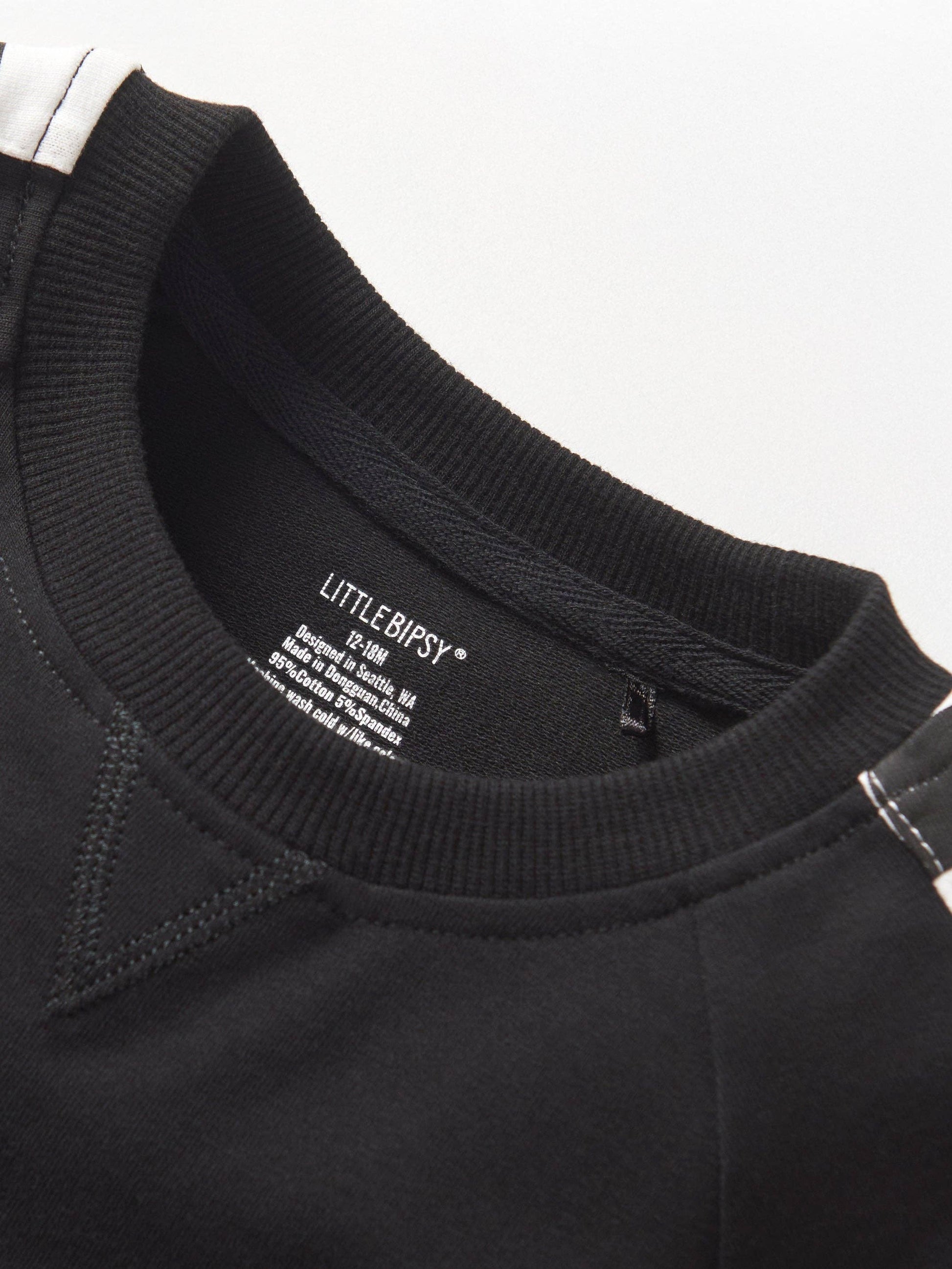 Designed with a ribbed neckline, cuffs, and hem for a clean finish, plus rollable cinched cuffs so you can style it your way. Side slits keep movement easy, while the stripe checkered detail down the sleeves adds a playful, standout twist. Finished with our signature embroidered “LB,” this pullover is ready for school, play, and everything in between.