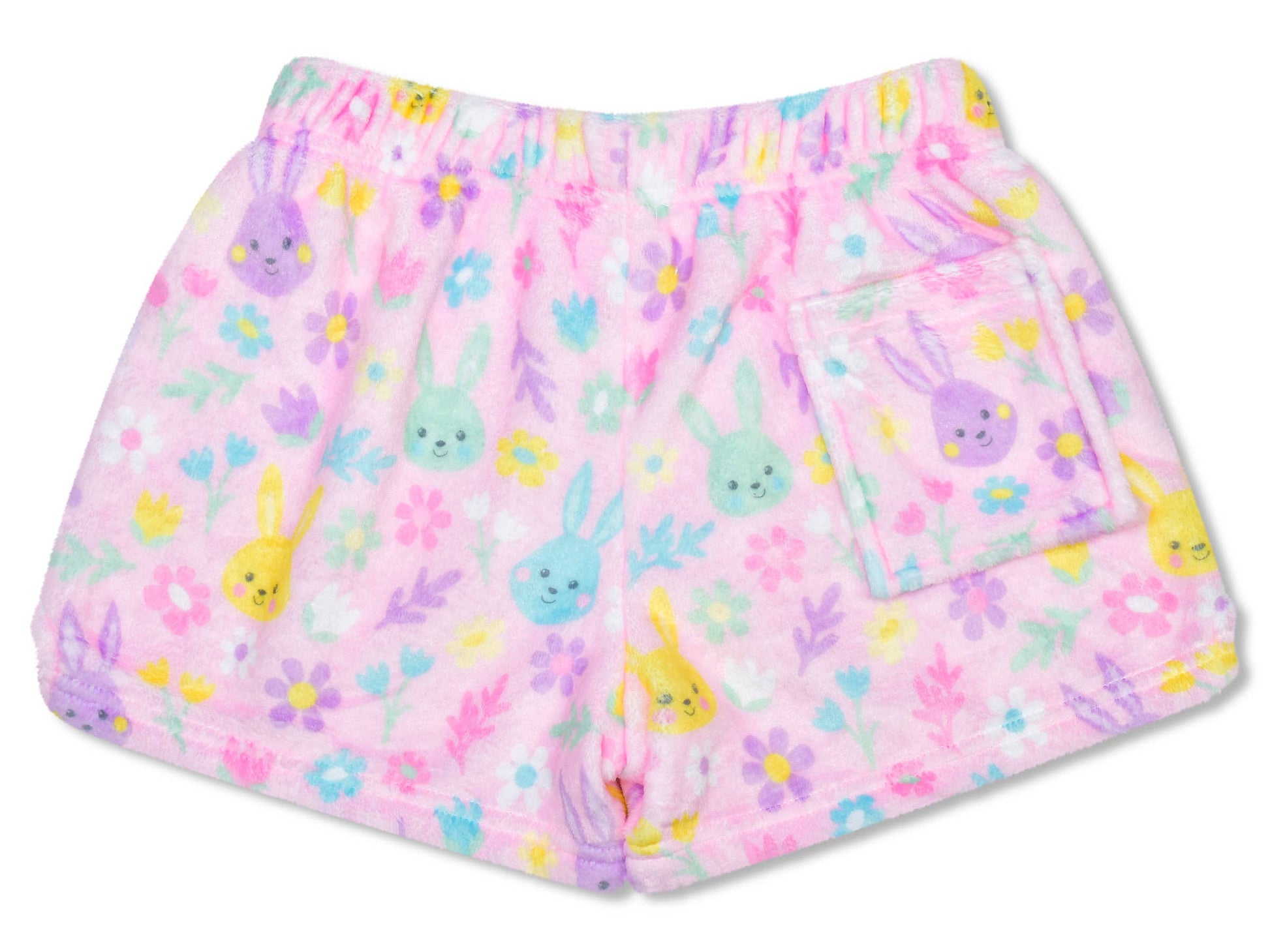 Stay cool and cozy with these Bunny Bloom Plush Shorts from Iscream! Perfect for lounging, sleepovers, or just relaxing at home, these super-soft shorts feature a vibrant all-over print of colorful bunny faces and blooming spring flowers on a sweet pink background. Crafted from 100% polyester furry and fleece plush, these shorts offer a velvety feel that is "ear-resistibly" soft. They feature a comfortable fabric-covered waistband for the perfect fit and a convenient back pocket for small essentials. Available in children’s sizes, these machine washable favorites are as practical as they are cute.