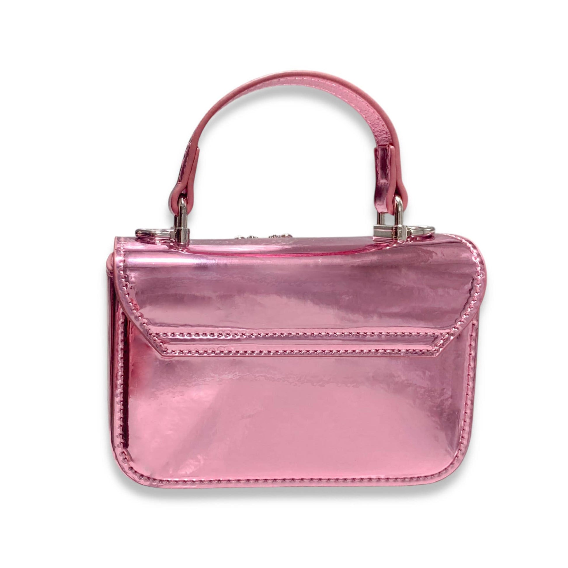 Crystal Decor Pink Patent Purse. Comes with detachable silver chain.