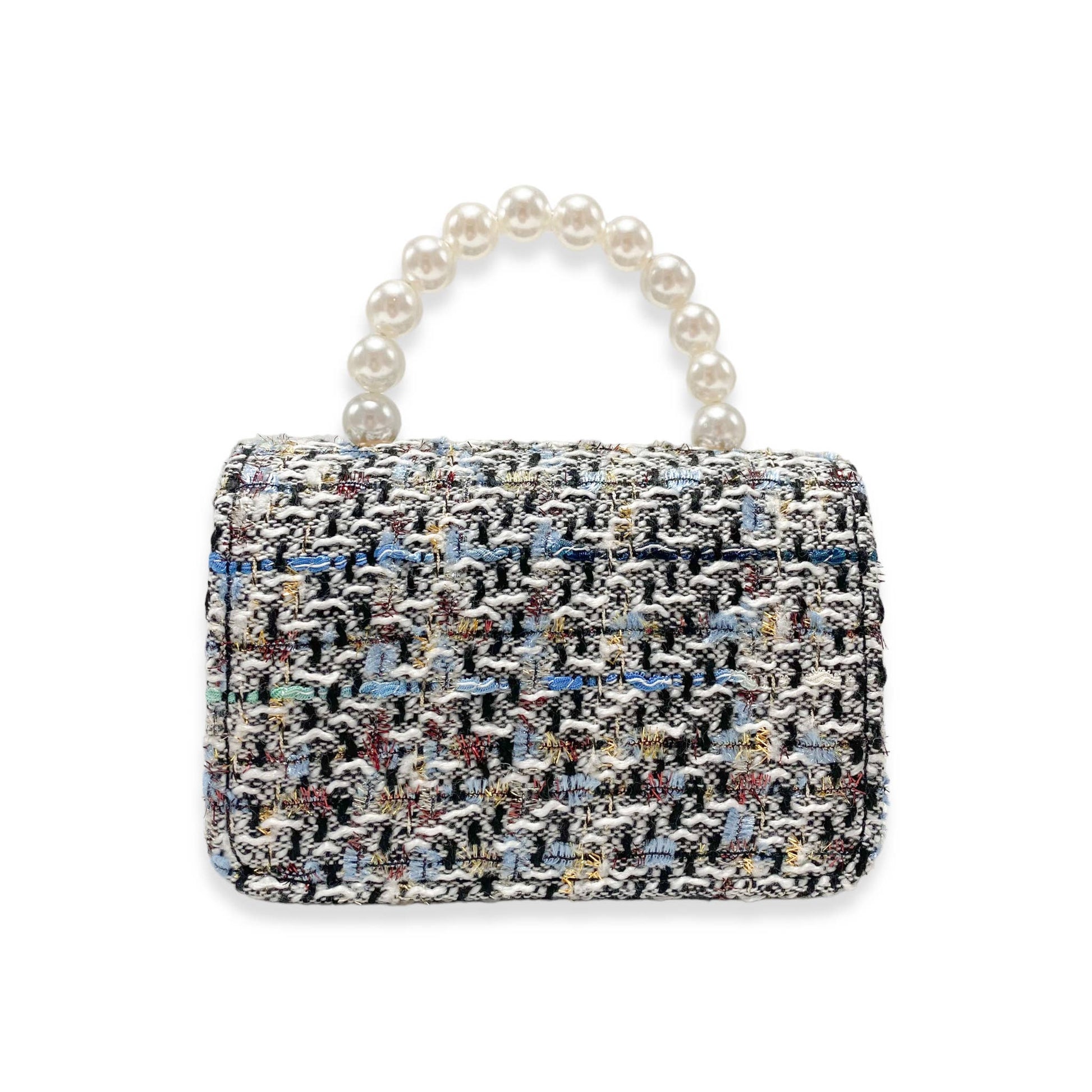 This elegant houndstooth purse is a true classic! The cute charms on the front lean into an elevated design that match perfectly with the pearl handle. A detachable gold chain is included as well!