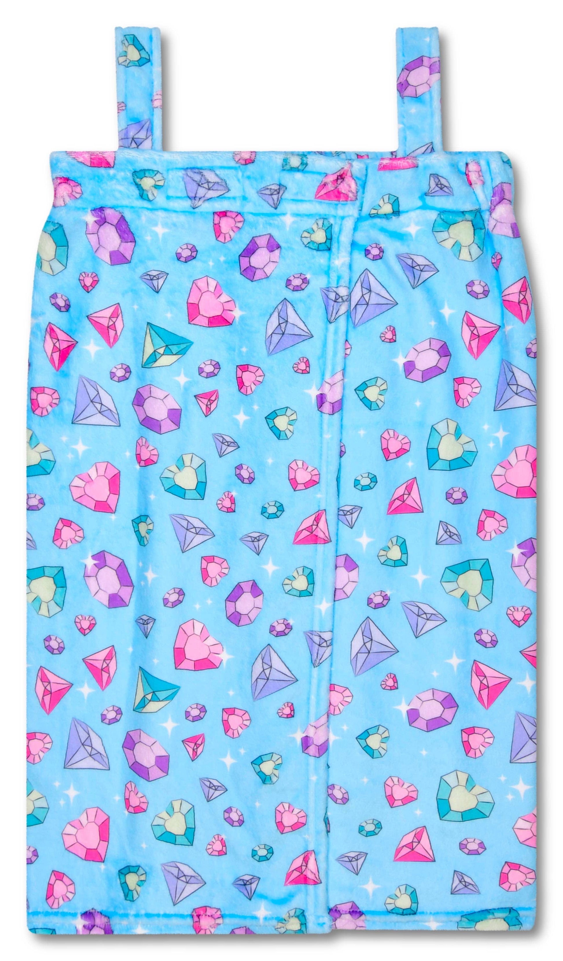 Get ready to get cozy with this Jazzy Jewels Spa Wrap from Scream! Made from ultra-soft, silky 100% polyester fleece, it's perfect for lounging after a bath or getting ready for a fun spa day. The super cute print adds a touch of style, while the adjustable velcro closing and straps ensure a snug and comfy fit. It's also machine washable for easy care and comes packaged on a hanger for simple display.