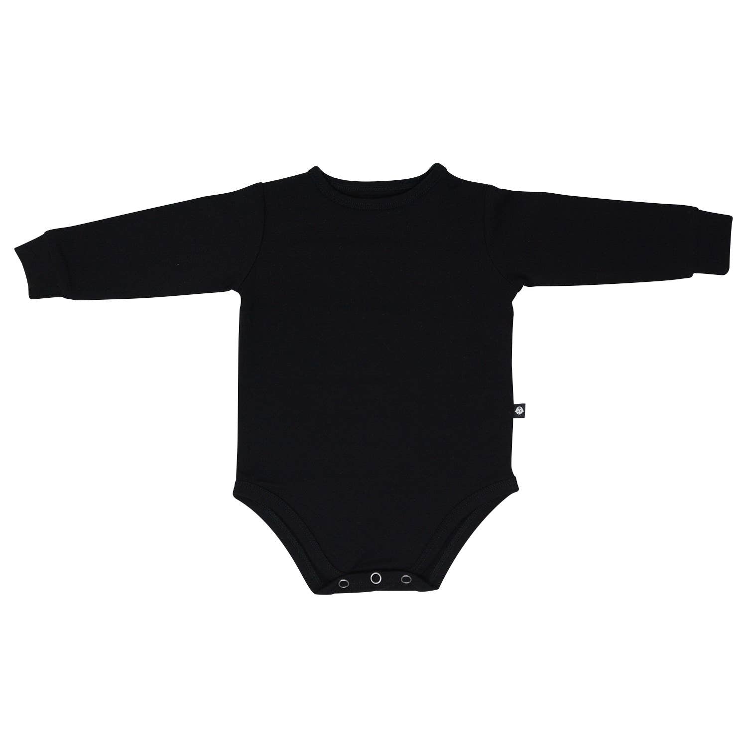 Blazing Black Long Sleeve Bodysuit. The best basic for baby. Cuffed sleeve, close fit, and tagless comfort. Good for the earth and for your children.