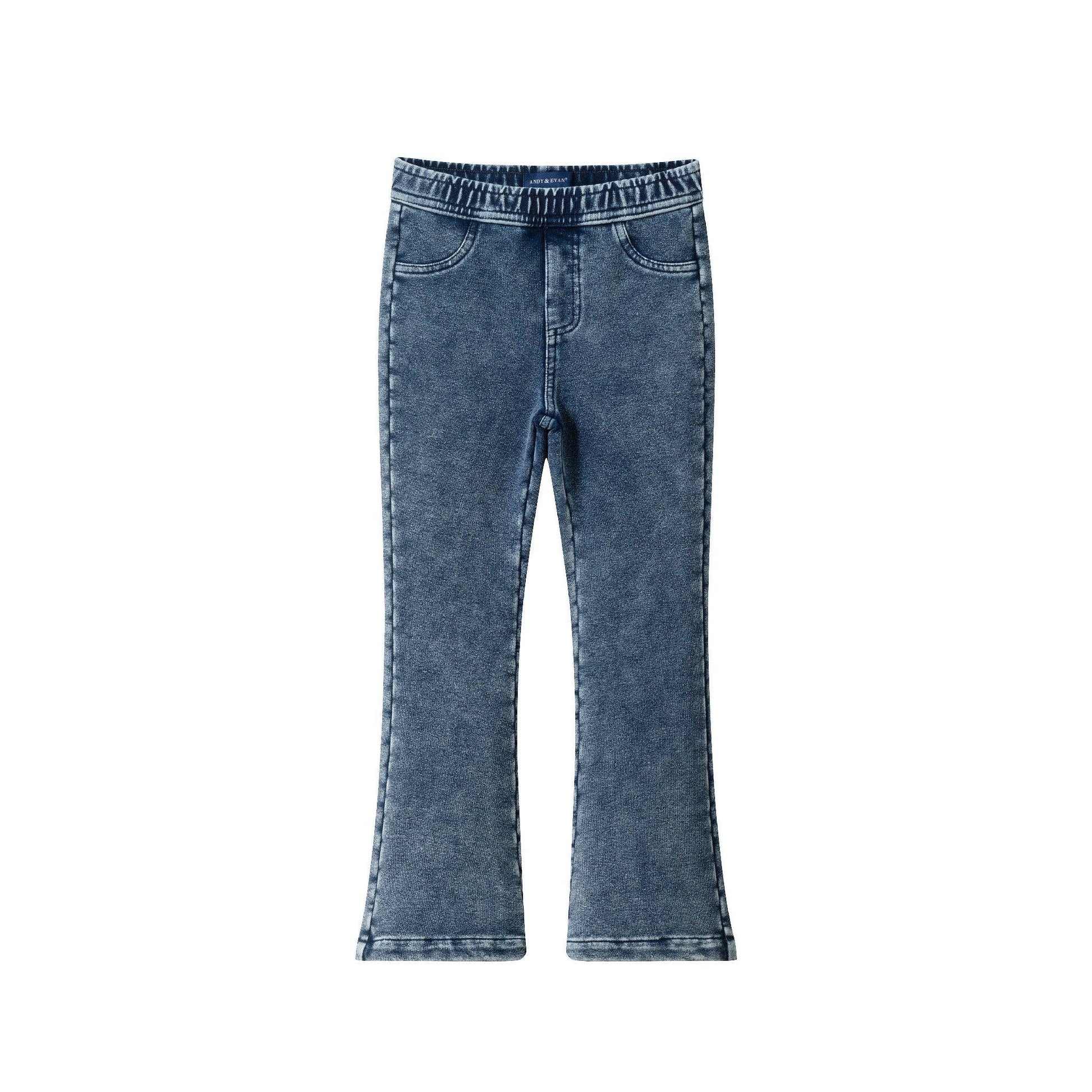 Comfy like a legging, cool like denim—these mid wash knit pants are their new go-to for everyday adventures. Made to stretch and move with them, they’re ready for cartwheels, hopscotch, or chilling with a book. Looks like denim, feels like a soft knit. A classic everyday denim wash that pairs with everything. Flared leg. Elastic waistband for a comfy, pull-on fit.