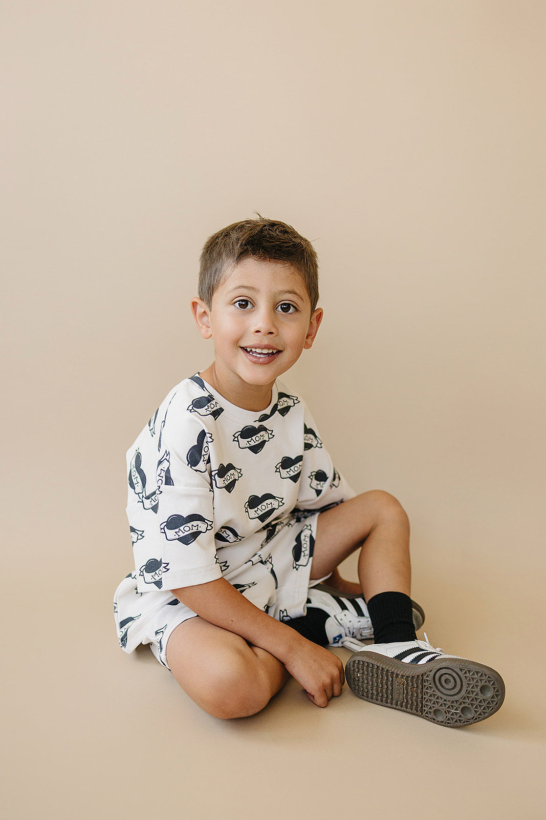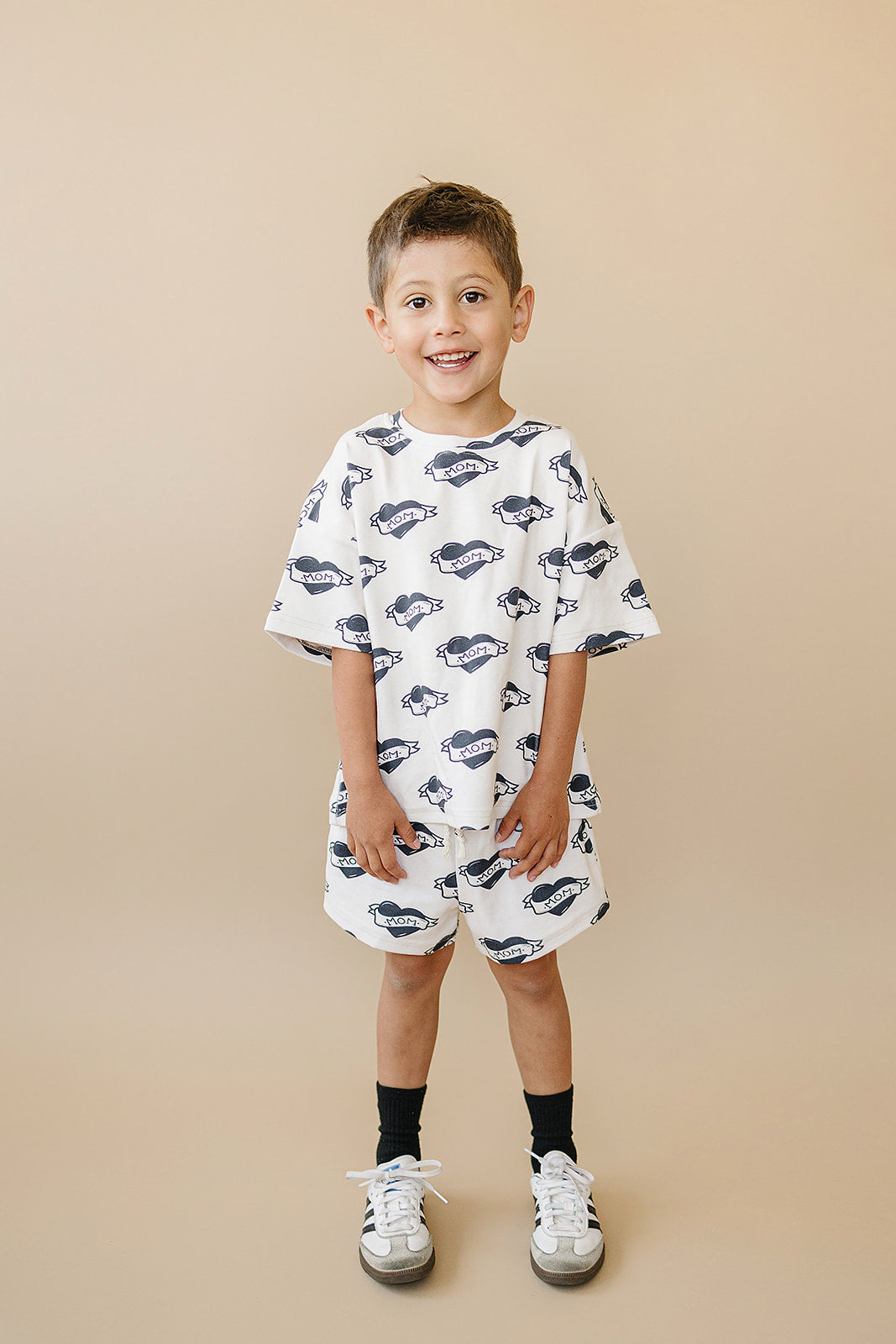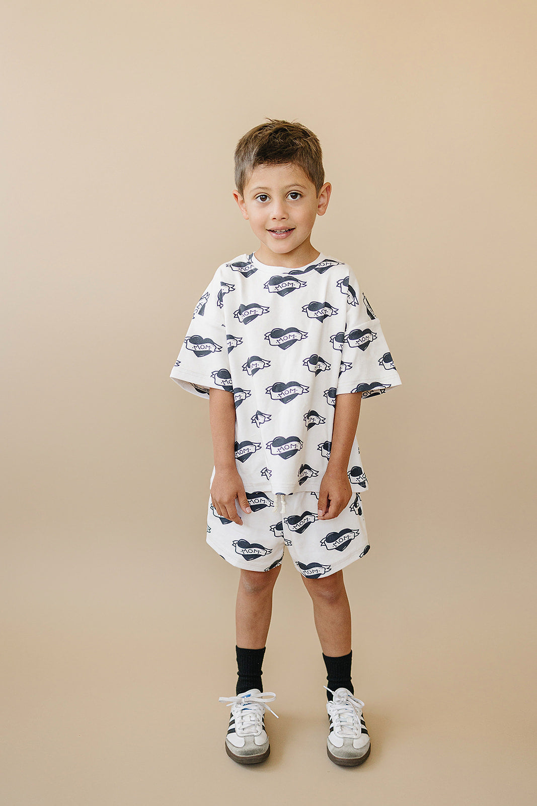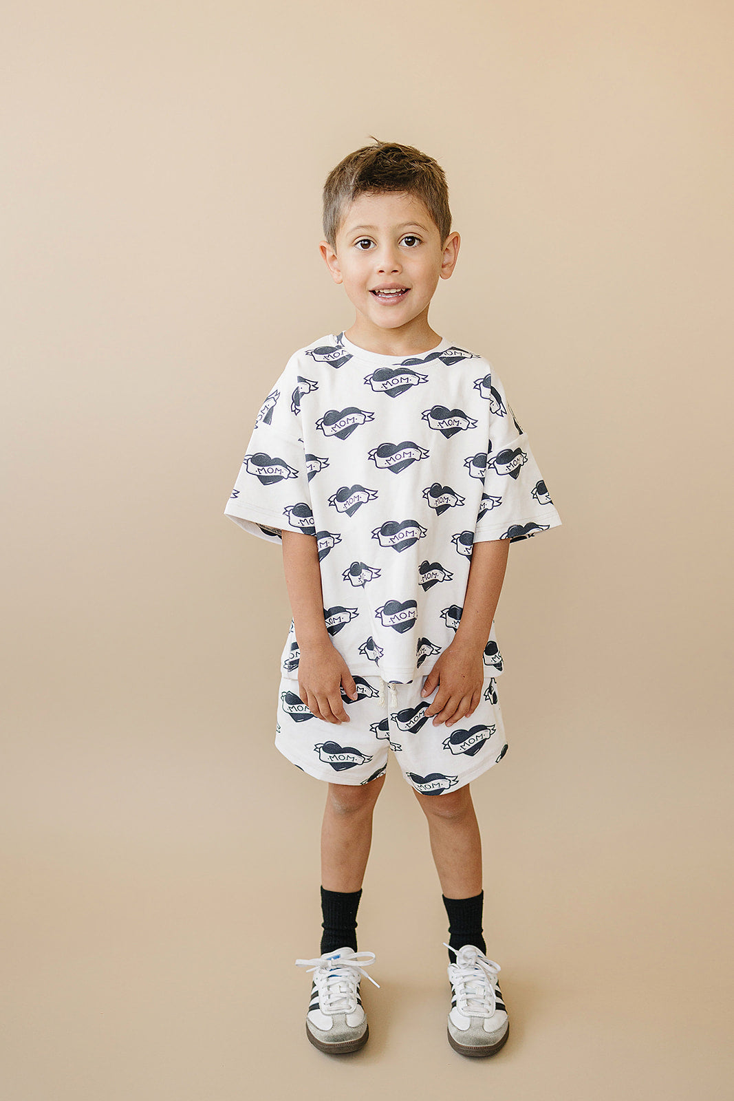 This playful two-piece set draws inspiration from tattoo designs, showcasing a striking heart-themed pattern that’s sure to catch eyes. Crafted from super-soft cotton with a touch of stretch, it’s ideal for relaxing, having fun, or making a statement wherever you go.