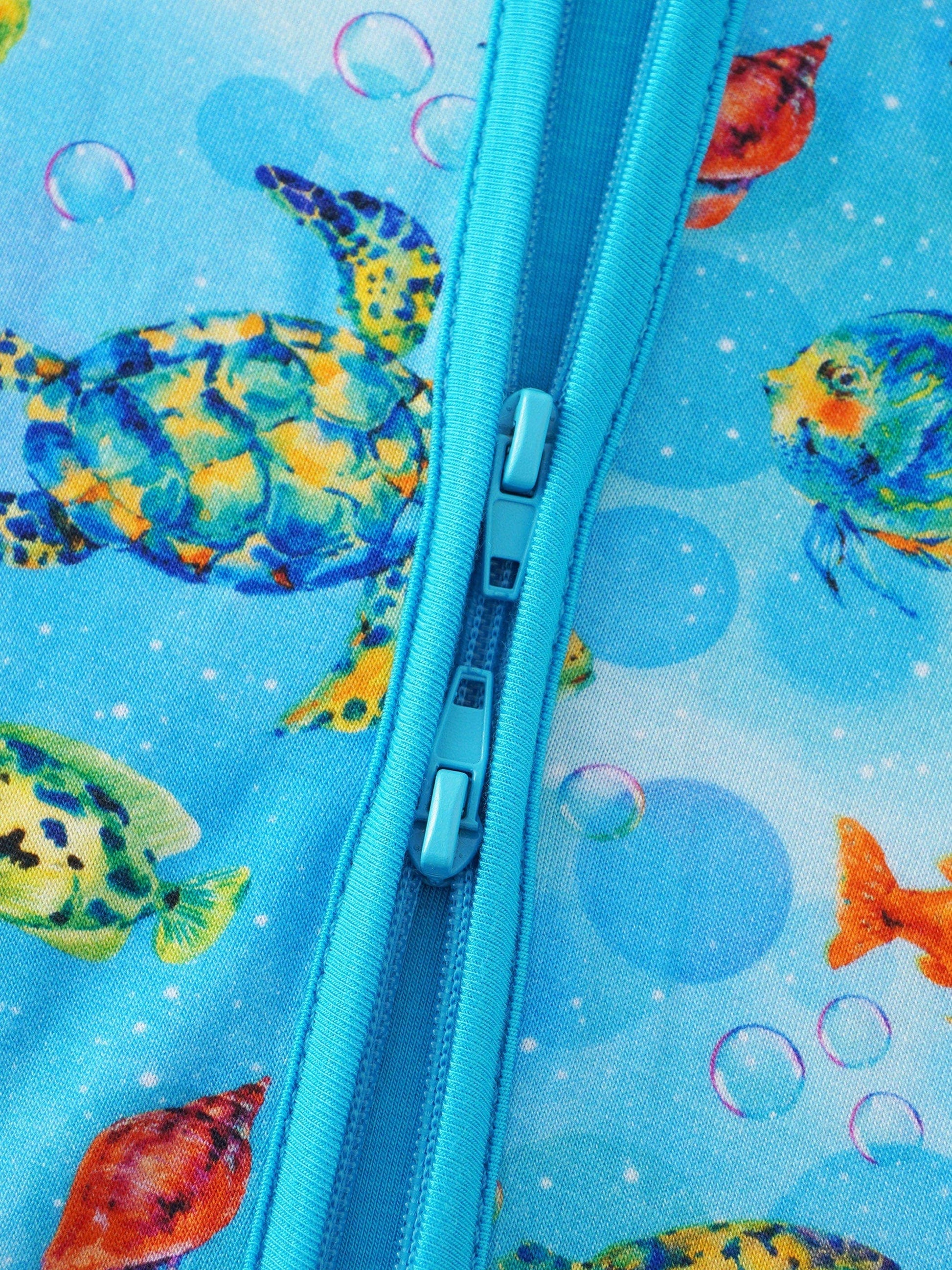 PoshTOT Sea Turtle Bamboo Convertible Zip Romper