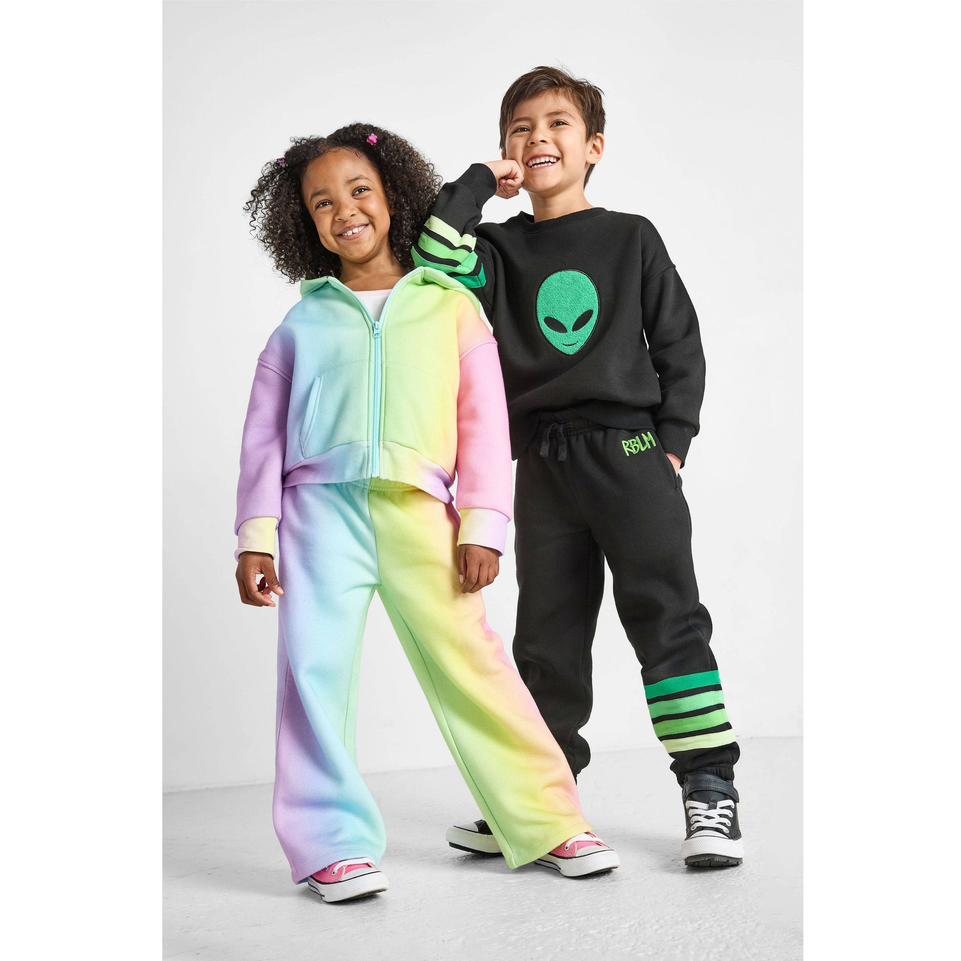 Our Rainbow Wide-Leg Joggers will brighten the dreariest day! Your ray of sunshine will look ultra trendy while feeling comfy in this plush brushed jersey fleece fabric. The most spectrum-tacular part? It’s made with organic cotton, and polyester made from recycled plastic bottles to help keep our planet clean and green. Create a complete outfit with our Rainbow Zip-Up Hoodie and Heart Knotted Baseball Tee.