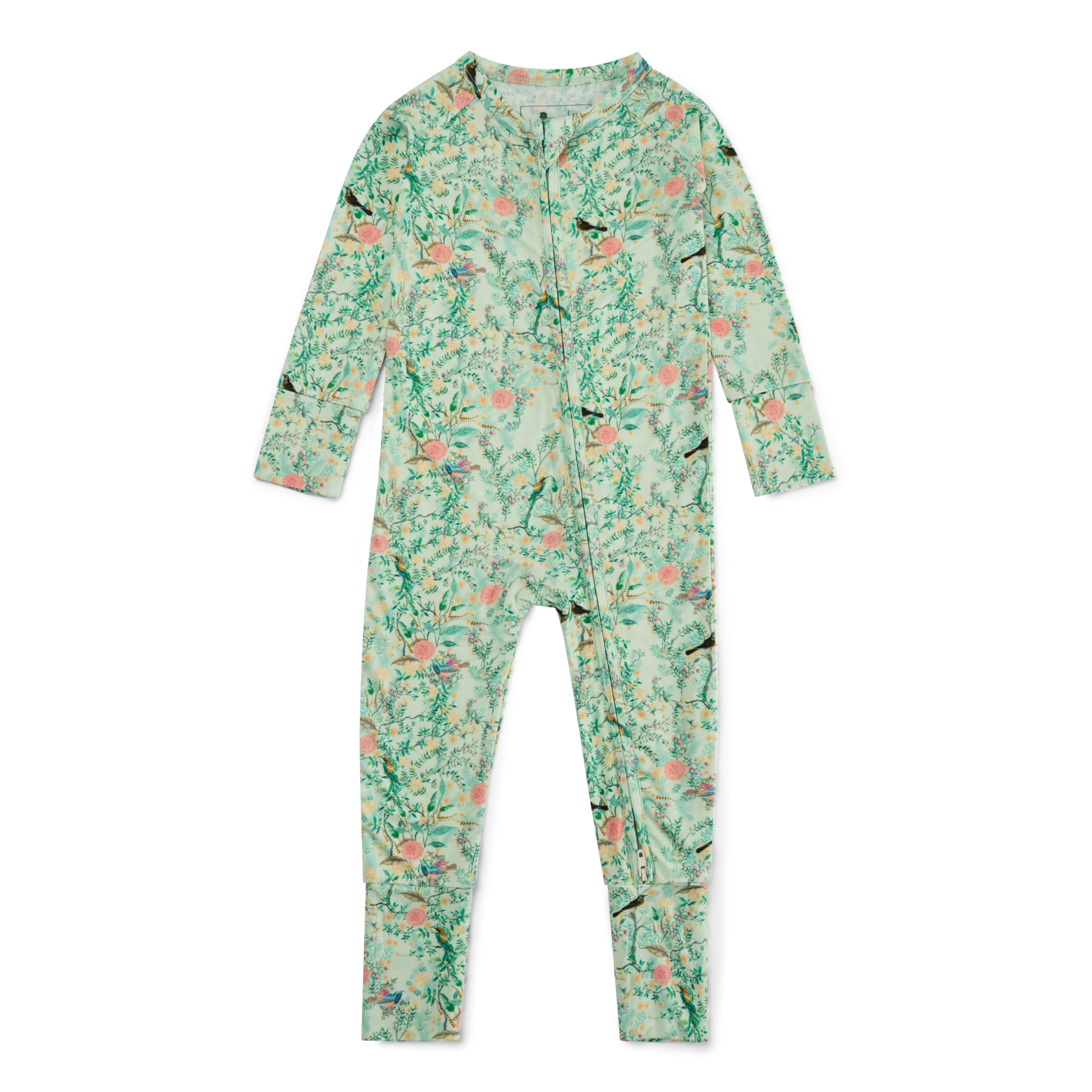 This sweet onesie is crafted from our signature buttery-soft bamboo fabric. Perfect for sensitive skin, the seasonless, tag free fabric ensures year-round comfort. Thoughtful touches like fold-over mittens (up to size 3-6 months) and foot cuffs keep little ones cozy and scratch-free, while the double zipper makes diaper changes effortlessly easy.