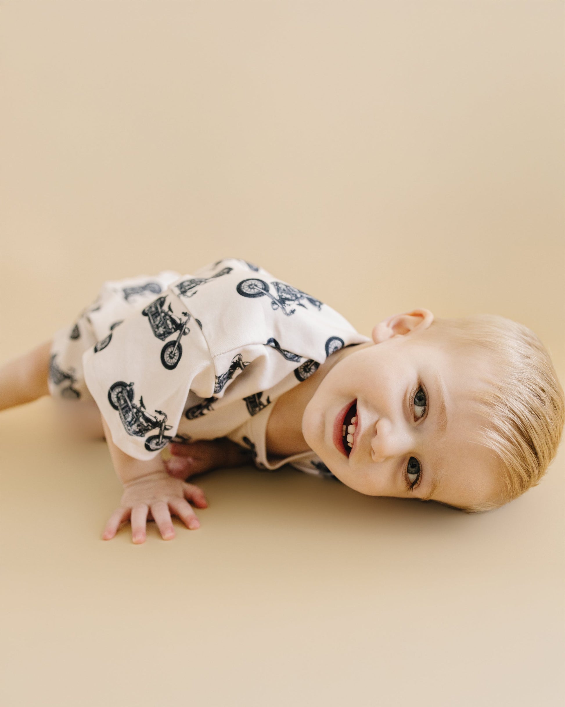 For the little thrill-seeker, the Born to Ride shorts set is just right! With a fun motorcycle design, this outfit adds a touch of daring to their look. Crafted to be soft and breathable, it’s ideal for busy days filled with adventure, keeping them comfy while expressing their fearless style.